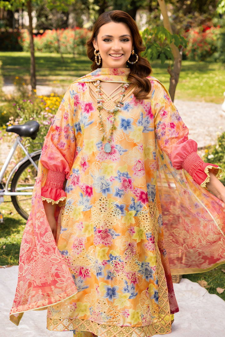 Front fine lawn digital print chicken Kari embroidery Dupatta Chiffon with lawn digital print Trouser plain cotton