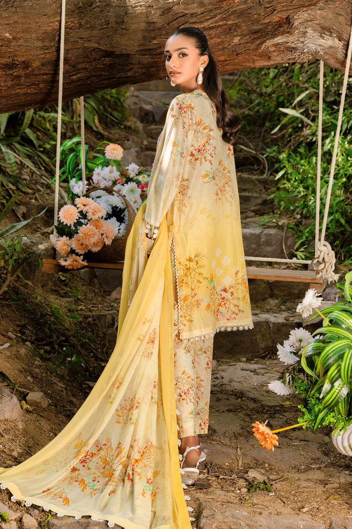Front fine lawn digital print chicken Kari embroidery Dupatta Chiffon with lawn digital print Trouser plain cotton