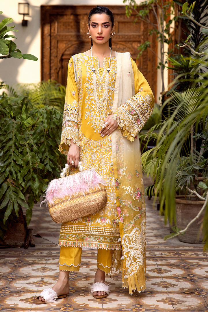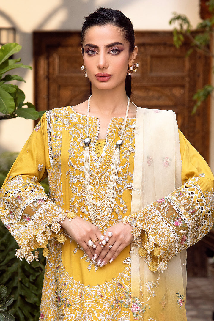 Front Embroidered Shamoz Cotton Satin Back Embroidered Shamoz Cotton Satin Sleeves Embroidered Shamoz Cotton Satin Dupatta Organza Embroidery Front Daaman Organza Embroidered Patch Front Neckline Embroidered Patch Back Daaman Organza Embroidered...