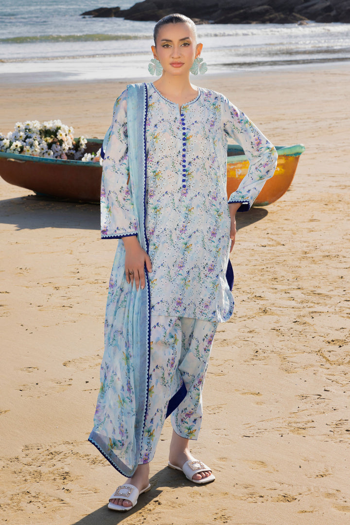 Front Chikankari: 45 inchesBack and Sleeves: 1.5 meters (wider width)Trouser (Printed): 2.5 metersDupatta (Printed): 2.5 meters Price: Rs. 7,895/-